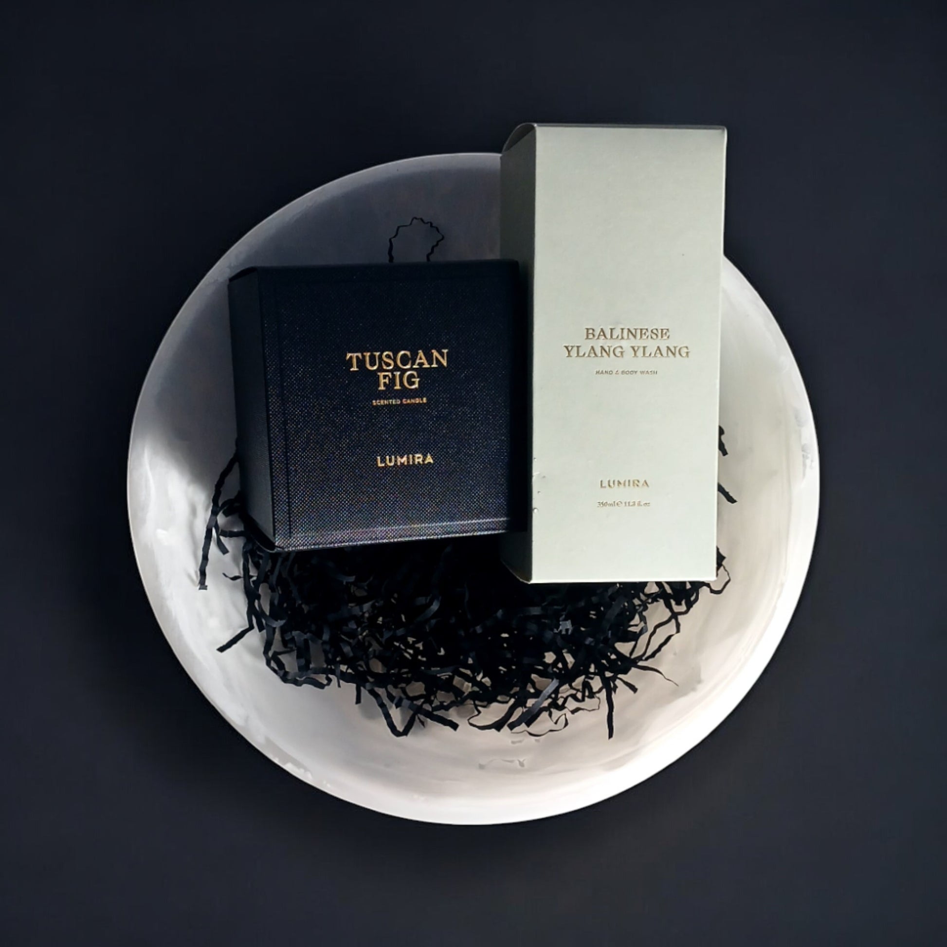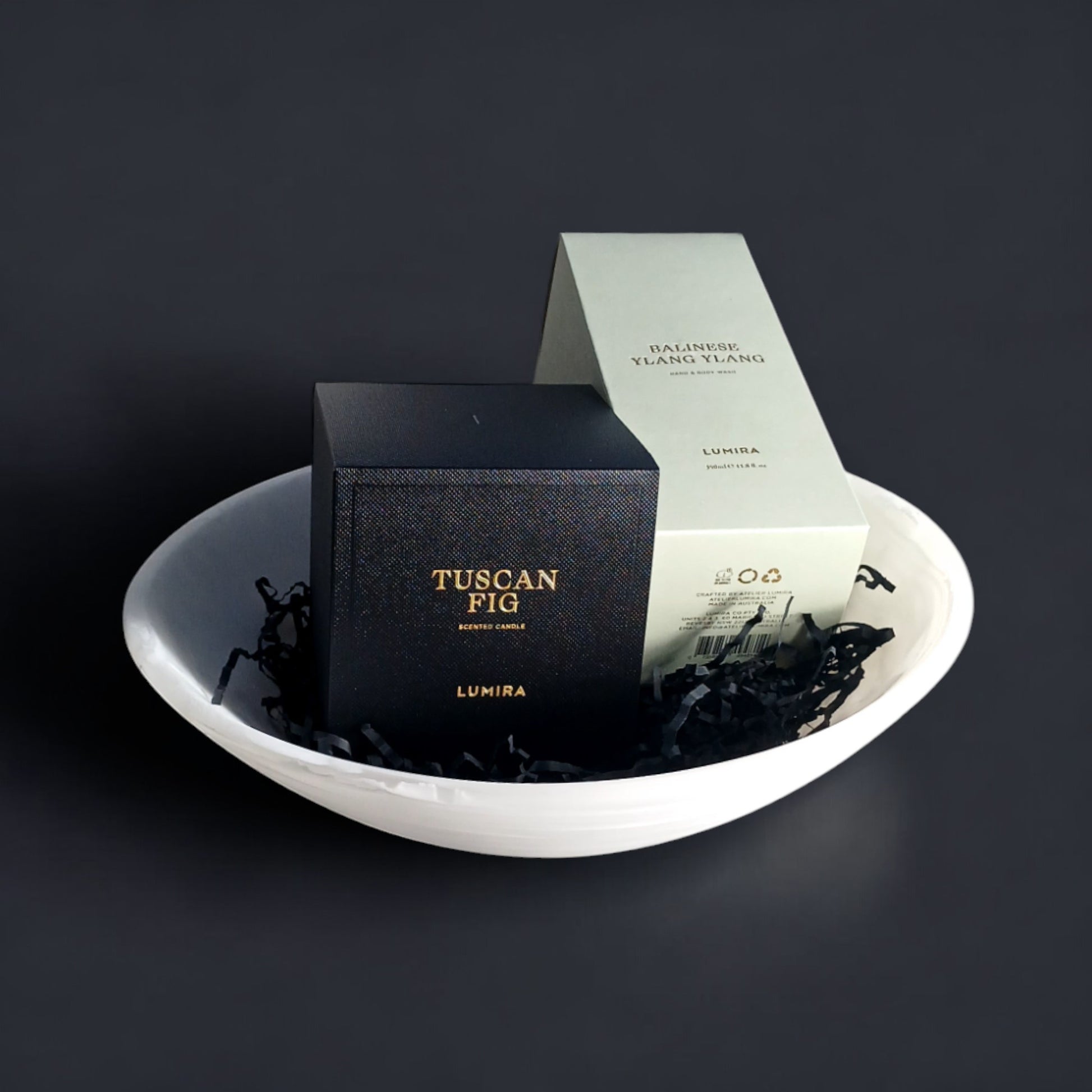 Presented in a stunning 28cm handmade resin bowl, The Luxe Hamper is filled with a curated selection of ultra-luxe goodies in sophisticated black and gold hues—perfect for those who appreciate the finer things.